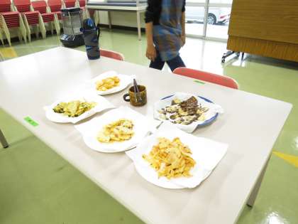 第1回目のいろいろクラブは、ポテトチップス作りでした。じゃがいもの皮をむき、なるべく薄く切って、油でこんがり揚げました。味付けは、塩、のり塩、梅、たらこ、コンソメの5種類!!さらに溶かしたチョコレートをディップしたスペシャルもありました。