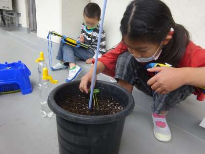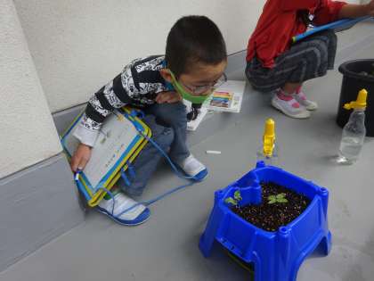 今日は、1年生のアサガオ、2年生の野菜の観察をしました。