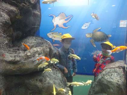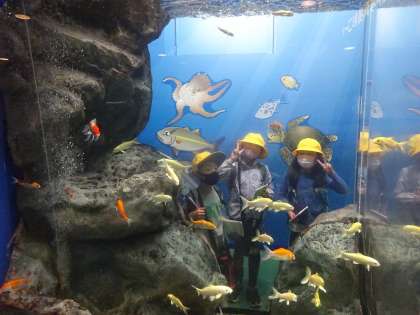 水槽の裏に立って写真を撮ると、海の中にいるみたい!