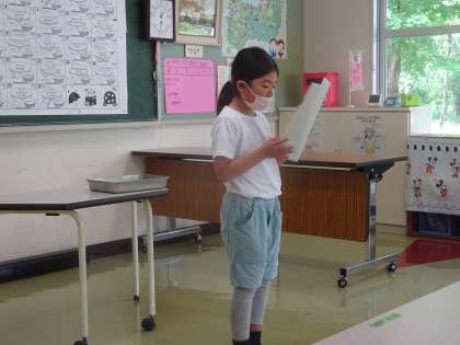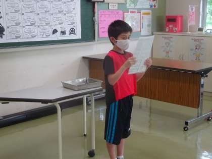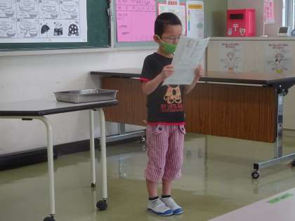 できることをふやそう じぶんのよさをみつけよう(1・2年生) 公開日 2021/06/11 更新日 2021/06/11 1・2年生 先月できたこと、今月できるようになりたいことを堂々と発表できました。