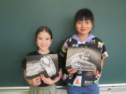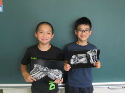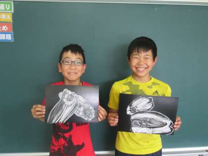 5・6年生が図工で取り組んでいた「消してかく」の作品が、完成しました。