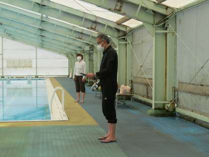 待ちに待ったプール開きが行われました。2年振りの水泳学習の始まりです。