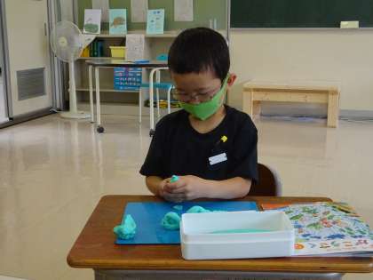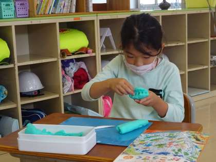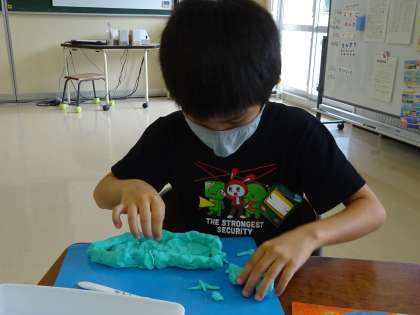 今年度初めての粘土を使った学習では、握ってできた形からいろいろなものを想像して作品を作ろうと頑張っていました。