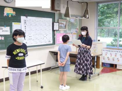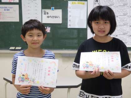 読書ビンゴを達成した4年生に、司書の先生から賞状が渡されました。