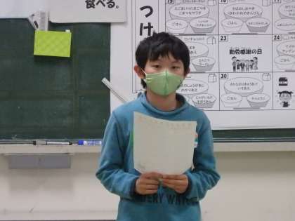 目標に向かって努力する大切さ、あきらめずに最後までやりぬくよさについて発表しました。
