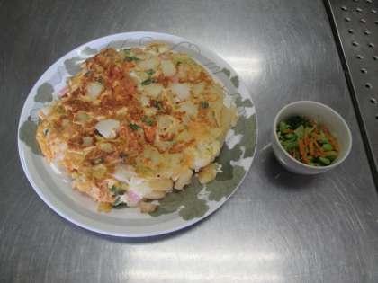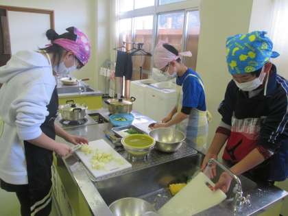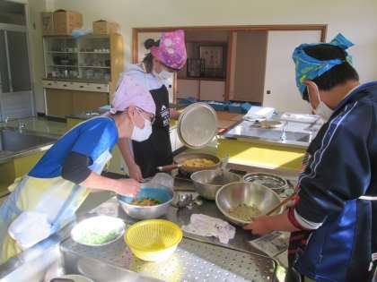 6年生は、1食分の献立を考え、おかず作りに挑戦しました。メニューは「スパニッシュオムレツ「と「ブロッコリーとにんじんのごまサラダ」です。グループで役割を分担して手際よく調理していました。彩りよく、栄養のバランスもとれたメニューで、味も最高でした。
