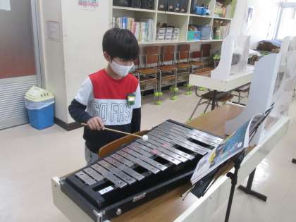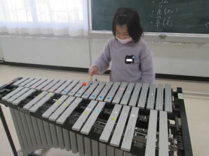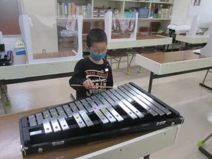 1・2年生は、音楽の時間に「きらきらぼし」を鉄琴(グロッケン・ビブラフォン)で演奏しました。初めての鉄琴にドキドキわくわく。マレットの持ち方に気を付けながら、きれいな音で演奏することが出来ました。