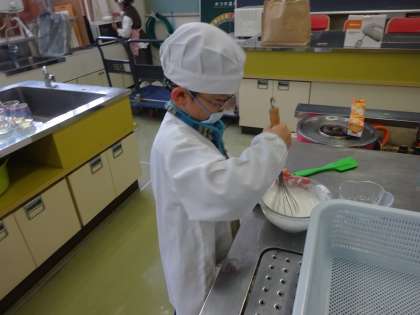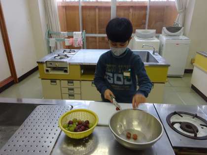 果物を切ったり、生クリームを作ったりして、パフェ作りの準備をしました。