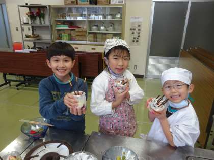 フルーツたっぷり、アイスひんやりの美味しいパフェができました。