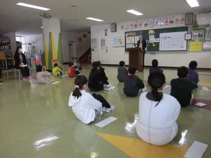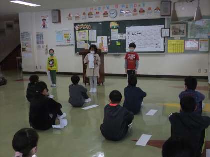 今日から3学期が始まりました。校長先生から3学期の過ごし方について話をしていただいた後、小見っ子が「新年の抱負」を発表しました。
