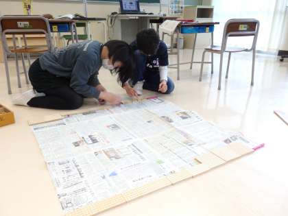 また、1立方センチメートルのブロックが、たてと横にどれだけ入るか調べ、1平方メートルの面積についての実感を深めました。