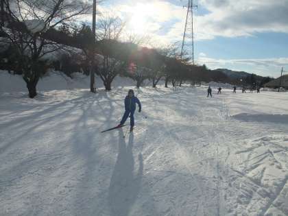 今日はクロスカントリースキーの練習でした。締まった雪で気持ちよく滑っています。