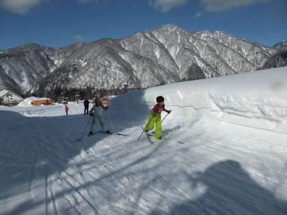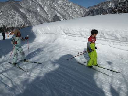 低学年も来週滑るコースを使って、登ったり滑り降りたりする練習でした。きつい登り坂でも腕や脚を使って一生懸命に進みます。