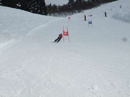途中にある緩斜面でスピードを落とさないように早めにクラウチングを組もうと意識しています。