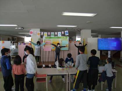 3・4年生は、「6年生のすてきなところランキング」と題し、アンケートの結果をクイズ形式で発表しました。