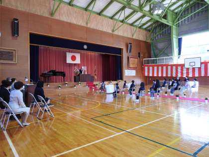 新1年生が2名加わり、全校13名になりました。2人とも名前を呼ばれての返事もお話を聞く姿勢もぴかぴかでした。2〜6年生の上級生は、歓迎の言葉と歌を心を込めて贈りました。