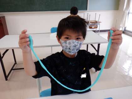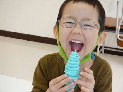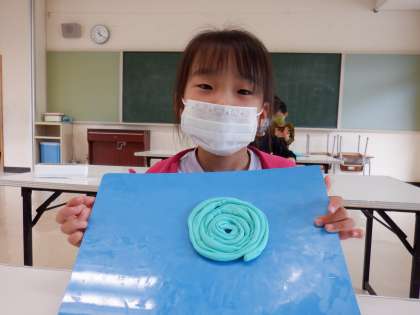 最初に、粘土を長くのばしたり丸めたり、いろいろな形作りに挑戦しました。すぐに粘土の扱いに慣れ、工夫して作品を作ることができました。