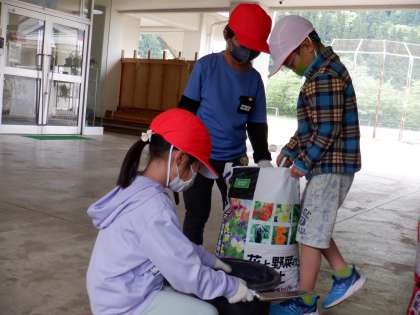 苗の植え替えでは、1年生が上手にお手伝いをしていました。