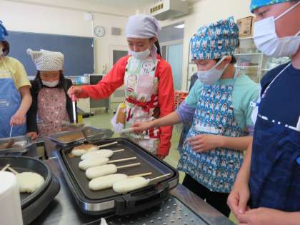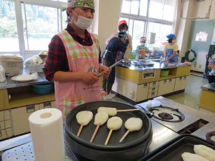 つぶしたお米の形を整えて、ホットプレートで焼きました。クルミ入りの味噌だれが、とても香ばしくておいしかったです。