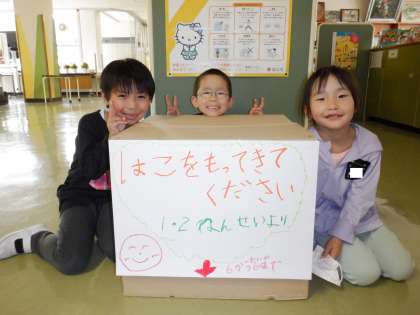 そこで、全校のみなさんにも箱集めをお願いしました。