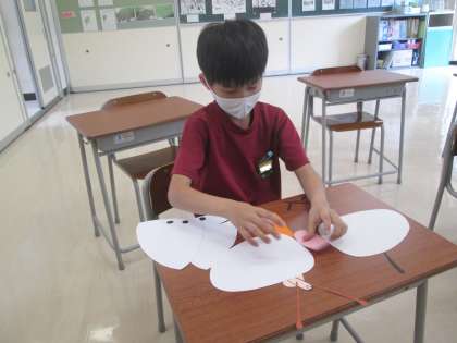 3年生は理科でチョウの育ち方を学習しています。今日は、成虫のからだのつくりを学習した後、成虫のからだのパーツを組み合わせるパズルに挑戦しました。足はむねについていることを意識して、足のパーツを並べました。