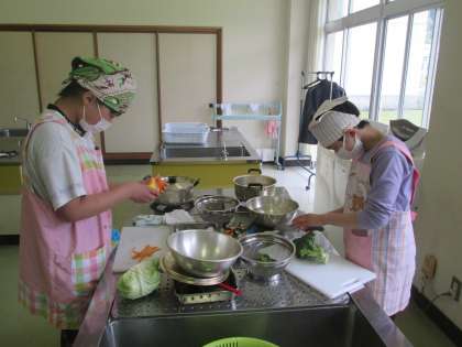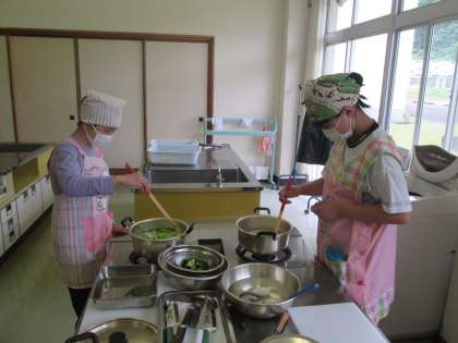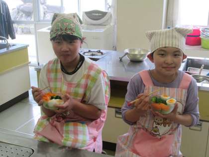 5年生は、家庭科の調理実習で、ゆで野菜サラダを作りました。野菜の切り方、ゆで方を確認しながら慎重に作業を進めました。