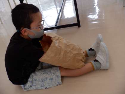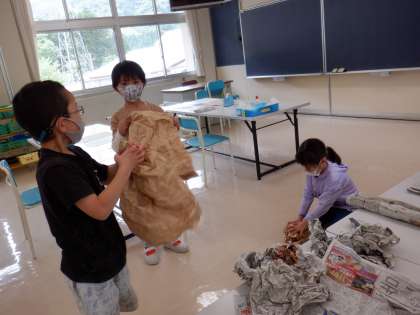 くしゃくしゃにした紙を丸めたり、膨らませたり、ぎゅっとしたり…。