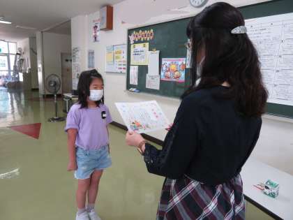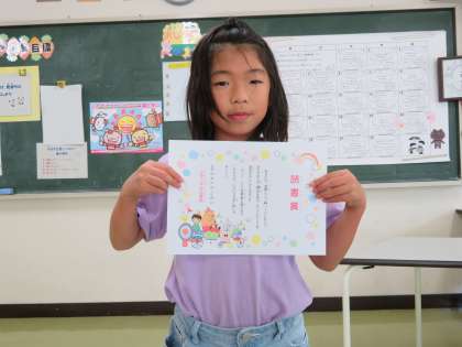 読書ビンゴを達成した3年生に、司書の先生から賞状が渡されました。