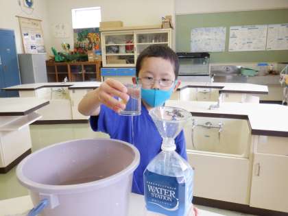 今日は、ペットボトルに水が何dL入るか予想しながら調べてみました。予想が当たり、大喜びの2年生でした。