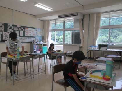 3・4年生は、図画工作科でビー玉が転がるコースを作っています。何度もビー玉を転がして、転がり方を確かめながらコースを付け足していきました。出来上がってみんなで遊ぶのが楽しみです。
