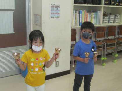 音楽の時間、「ドレミの歌」の中で階名が出てくる所で前回は、ブームワッカーを使いましたが、今回はミュージックベルを使って音を出しました。涼やかな音色で気分もさわやかになりました。