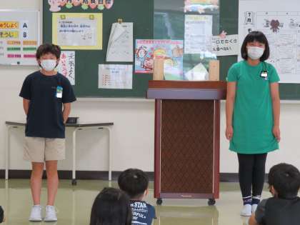 5年生が1学期にがんばったこと、2学期にがんばることを発表しました。