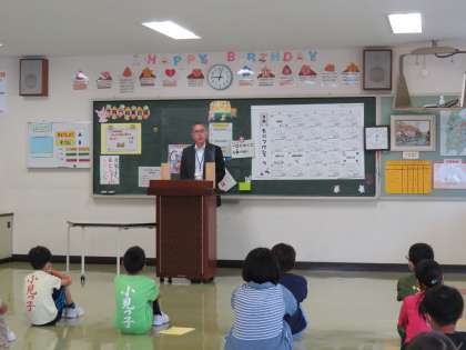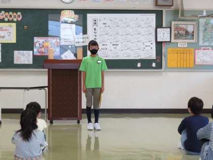 2学期の始業式を行いました。校長先生のお話の後、4年生が夏休み中にがんばったことや2学期にがんばりたいことを発表しました。