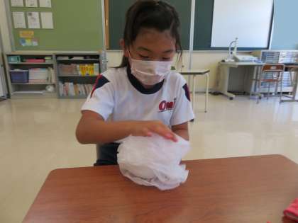 運動会で使う赤、ピンク、白の花を心をこめて作りました。