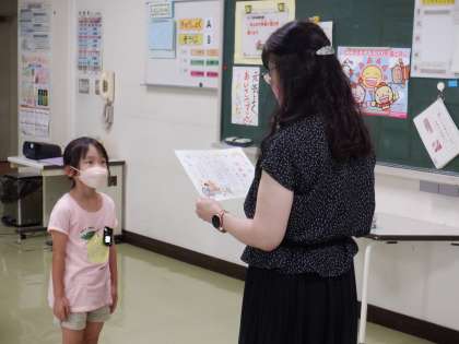 小見小学校では、学校司書の先生がおすすめする各学年の本で作成した「読書ビンゴ」に取り組んでいます。低・高学年は36冊、中学年は25冊でビンゴ達成です。