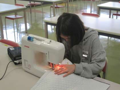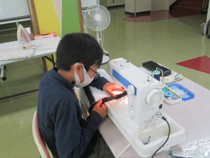 6年生は、家庭科で「トートバッグ」をミシンで縫っています。今日は、最難関の出し入れ口を縫いました。布が重ならないように注意しながら、慎重に作業を進めていました。