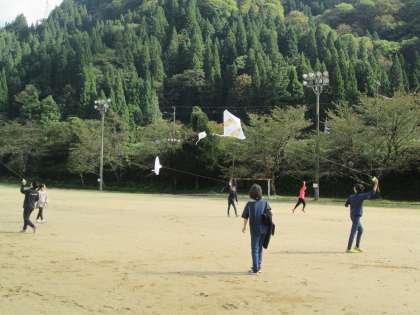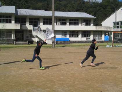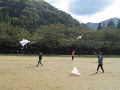 3〜6年生は、今週クラブの時間に作った凧を昼休みにグラウンドであげました。ほとんどの児童は凧揚げが初めてでした。青空にあがる凧を子供たちは思う存分楽しみました。