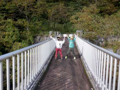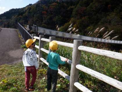 色とりどりに紅葉する山々やきれいな砂防堰堤を見ながら、いろいろな秋を見付けました。