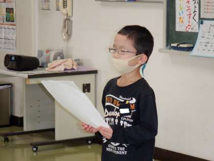 たくさん読書をしたい、音読が上手になりたい、給食を時間内に食べたいなど、自分ができるようになりたいことを堂々と発表しました。