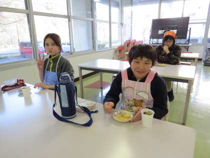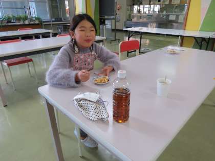電子レンジを使って簡単に手早く信玄餅が出来上がりました!みんなでおいしくいただきました。