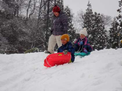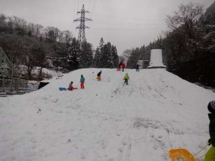 放課後に、そり滑りをしました。久しぶりのそり滑りに、みんな大喜びです。