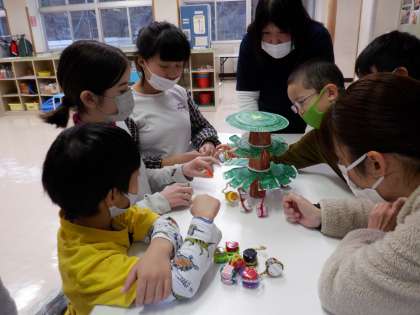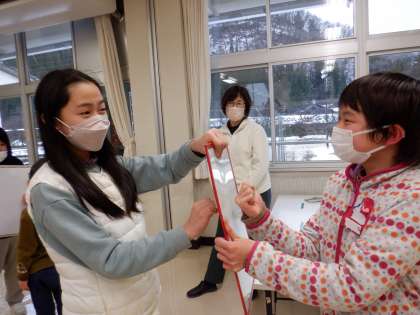 3・4年生が考えたゲームと、5・6年生が考えたゲームで遊んだり、みんなで「あわてんぼうのサンタクロース」を歌ったりしました。