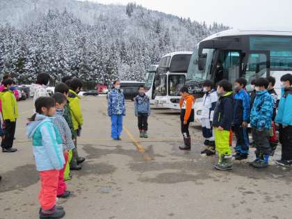2日間に渡った交歓会もいよいよ最後の時を迎えました。各学校の代表が感想を伝え合った後、白馬北小学校のバスが見えなくなるまで手を振って見送りました。