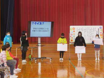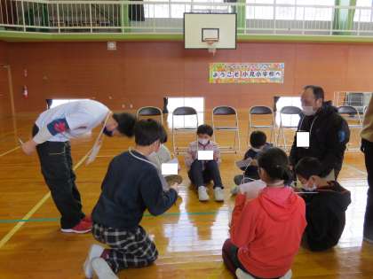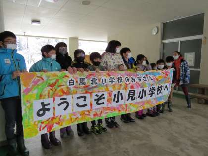 白馬北小学校のみなさんをピロティーでお出迎えしました。昼食後にウエルカム集会を行いました。学校紹介クイズや交流ゲームを通して、親睦を深めることができました。