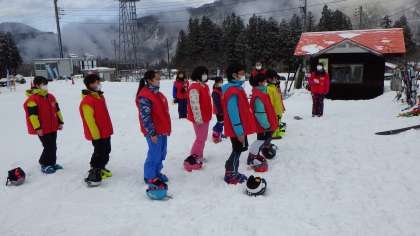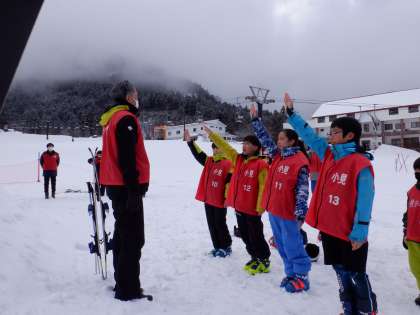 いよいよ校内スキー大会です。6年生の元気な選手宣誓で始まりました。今までの練習の成果を発揮しようと、みんな気合い十分です。