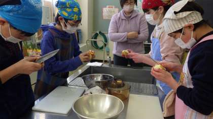 今日のいろいろクラブでは、いももちを作りました。ジャガイモの皮をむいて、レンジで加熱してつぶし、片栗粉と砂糖を混ぜて形を作りホットプレートで焼きました。簡単なのにとてもおいしいいももちが出来上がりました。たれも手作りです。