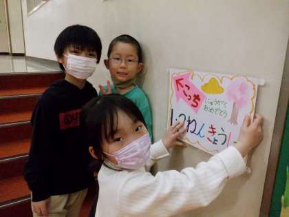 教室がすぐに分かるようにと、校内に看板を貼ったり、一緒に遊ぶためのカードを作ったりしました。