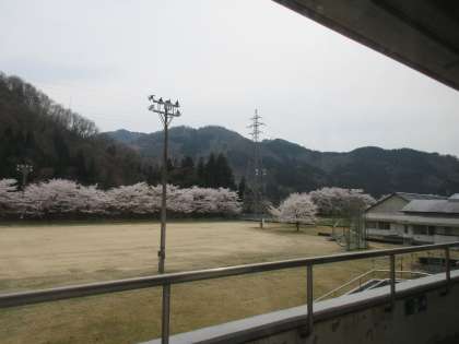 すべての部屋の窓から見える満開の桜が、小見っ子のみなさんを待っています。明日、元気な顔を見ることができるのを楽しみにしています。