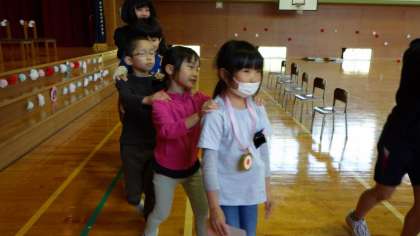 最後は、1年生を先頭にした縦割り班ごとの列車になって、全員で1年生を送りました。