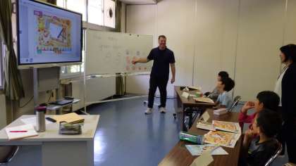 外国語活動の時間は教頭先生とグレゴリー先生と学習しています。
